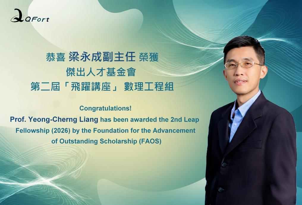 Congratulations! Prof. Yeong-Cherng Liang has been awarded the 2nd Leap Fellowship (2026) by the Foundation for the Advancement of Outstanding Scholarship (FAOS)